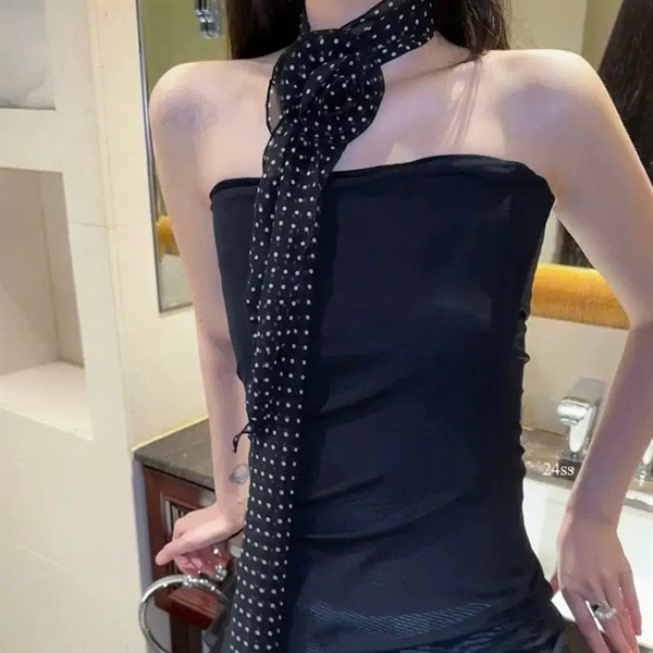 Khăn lụa chấm bi hoa hồng đen