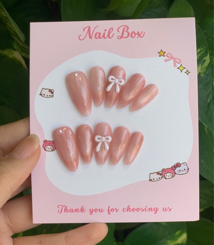Nailbox mm hồng nơ trắng rỗng