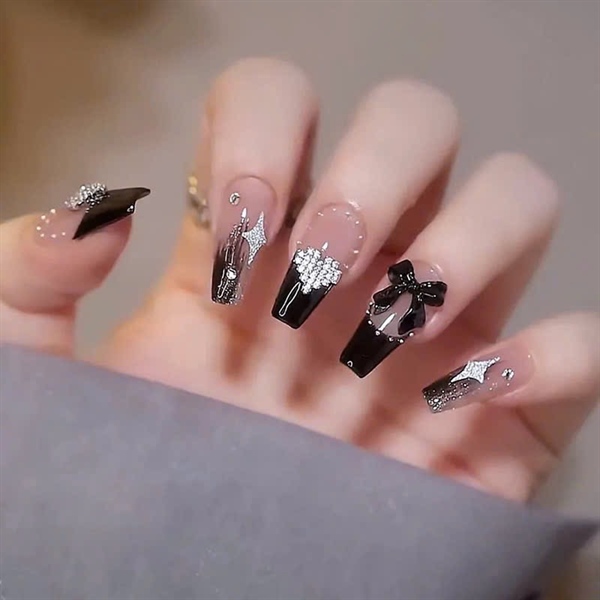 Hộp 24 móng dài cá tính, đầu ngọc trai tim lấp lánh