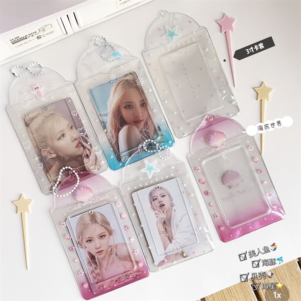 Đựng ảnh Polaroid móc khóa tiên cá trong suốt