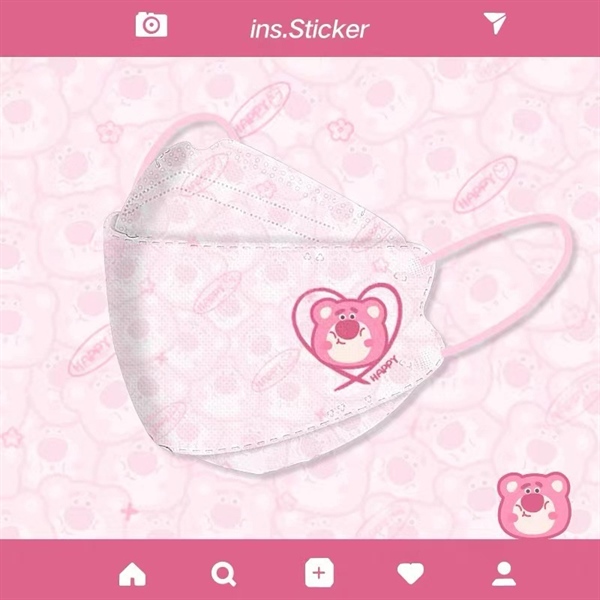 Khẩu trang KF94 gấu dâu hồng trái tim Happy