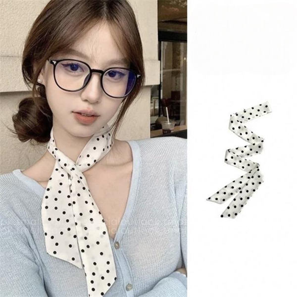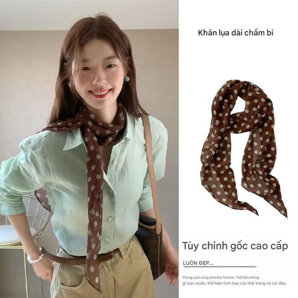 Khăn lụa chấm bi nâu thanh lịch