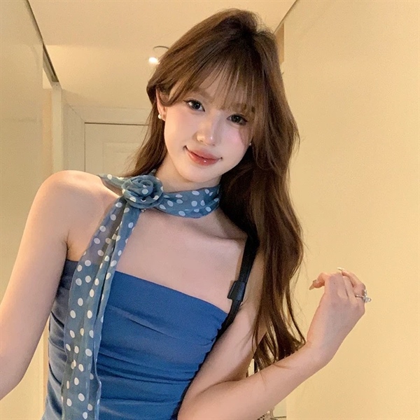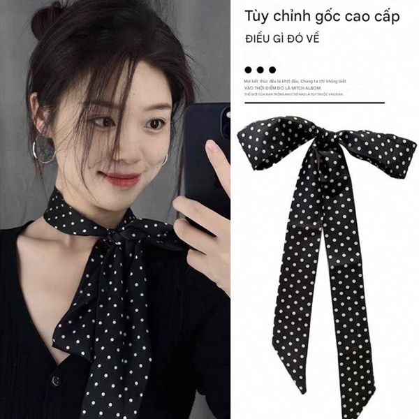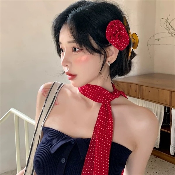 Khăn dây voan chấm bi đỏ