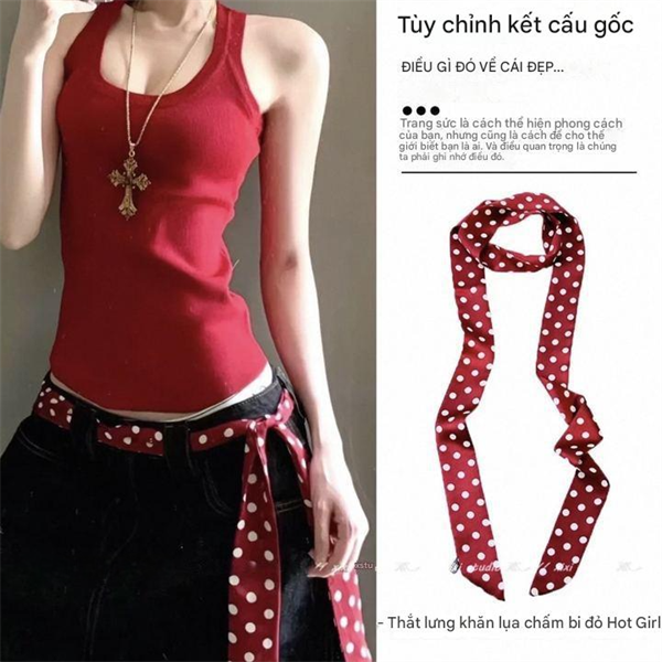 Khăn đỏ chấm bi